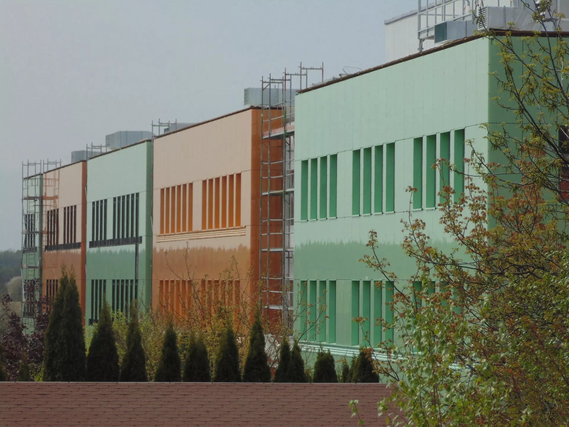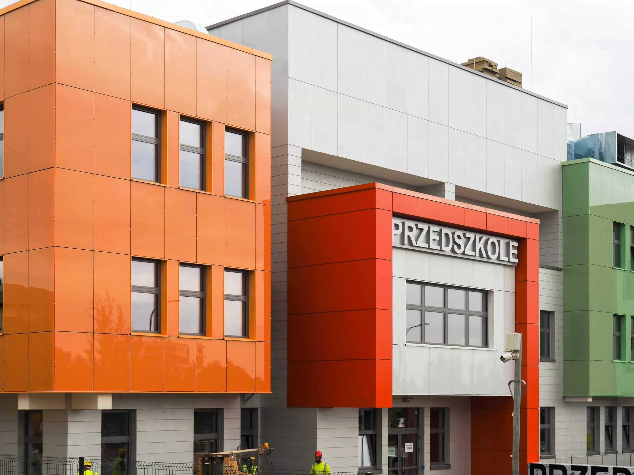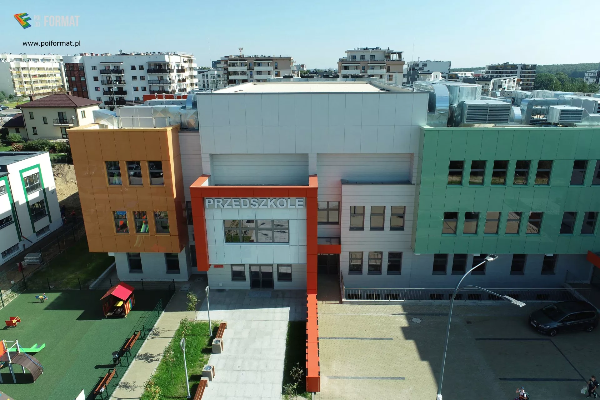 W projekcie skorzystano z kolorowych szkieł ESG – emalit. Właściwy efekt estetyczny tworzy odpowiednio ciepłą i urozmaiconą atmosferę dla młodych użytkowników tego pięknego kompleksu.