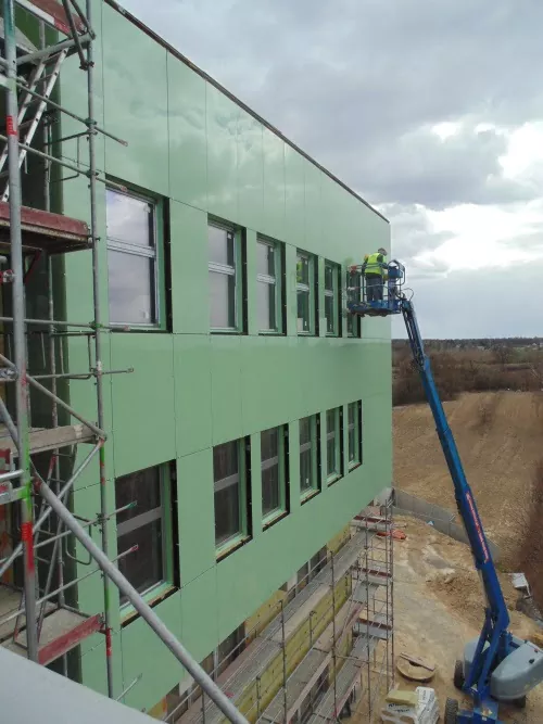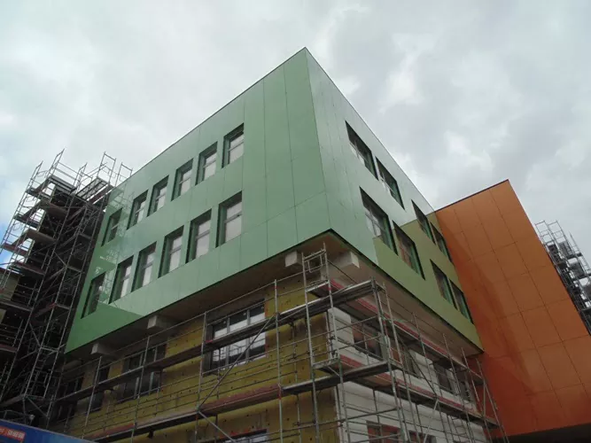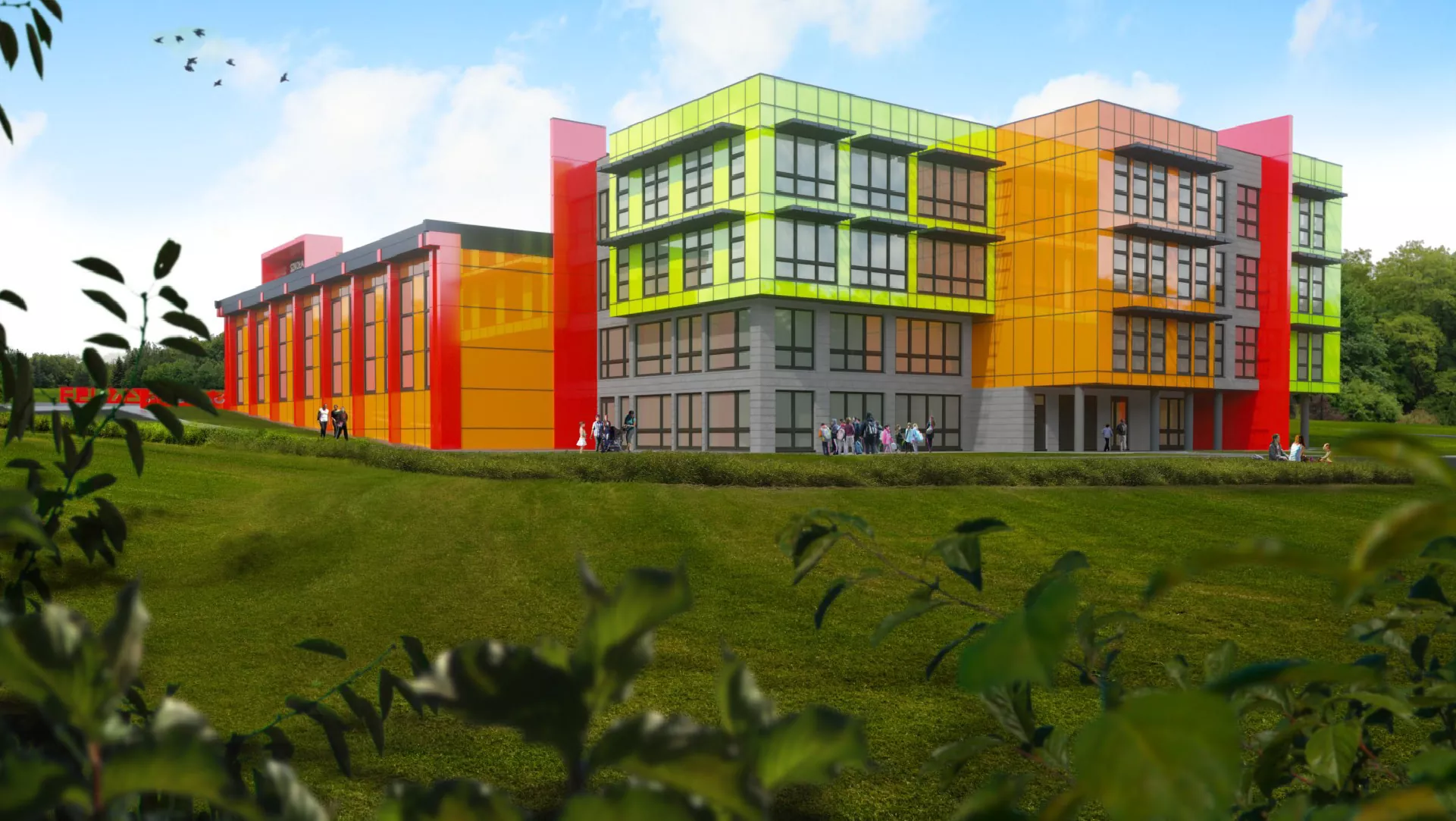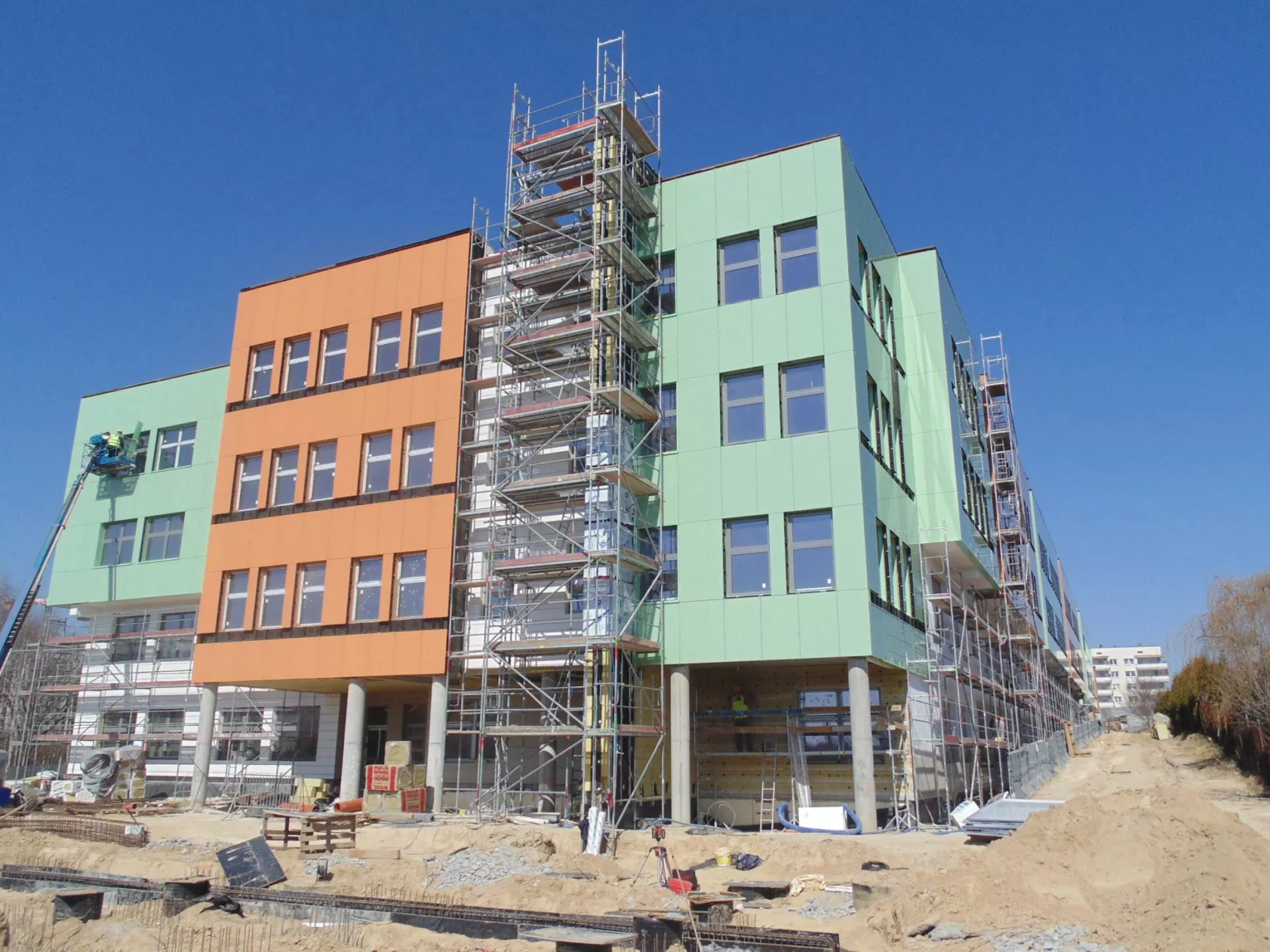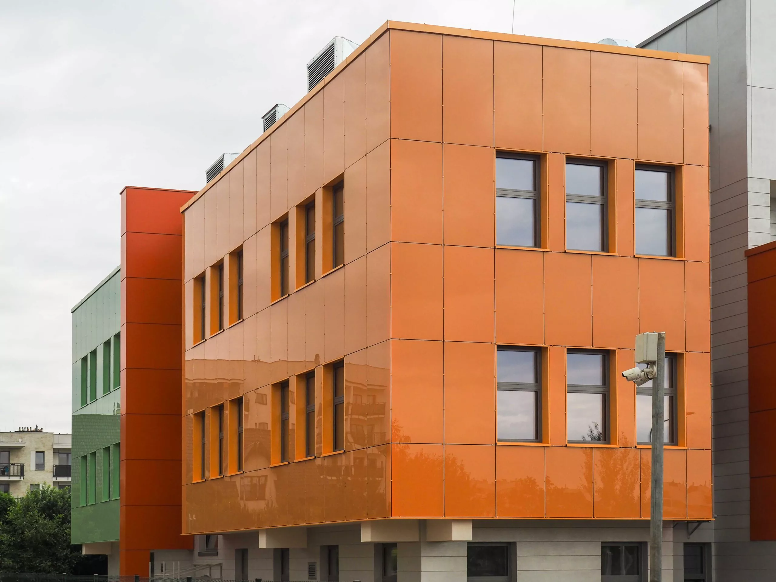 W projekcie skorzystano z kolorowych szkieł ESG – emalit. Właściwy efekt estetyczny tworzy odpowiednio ciepłą i urozmaiconą atmosferę dla młodych użytkowników tego pięknego kompleksu.