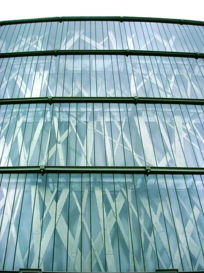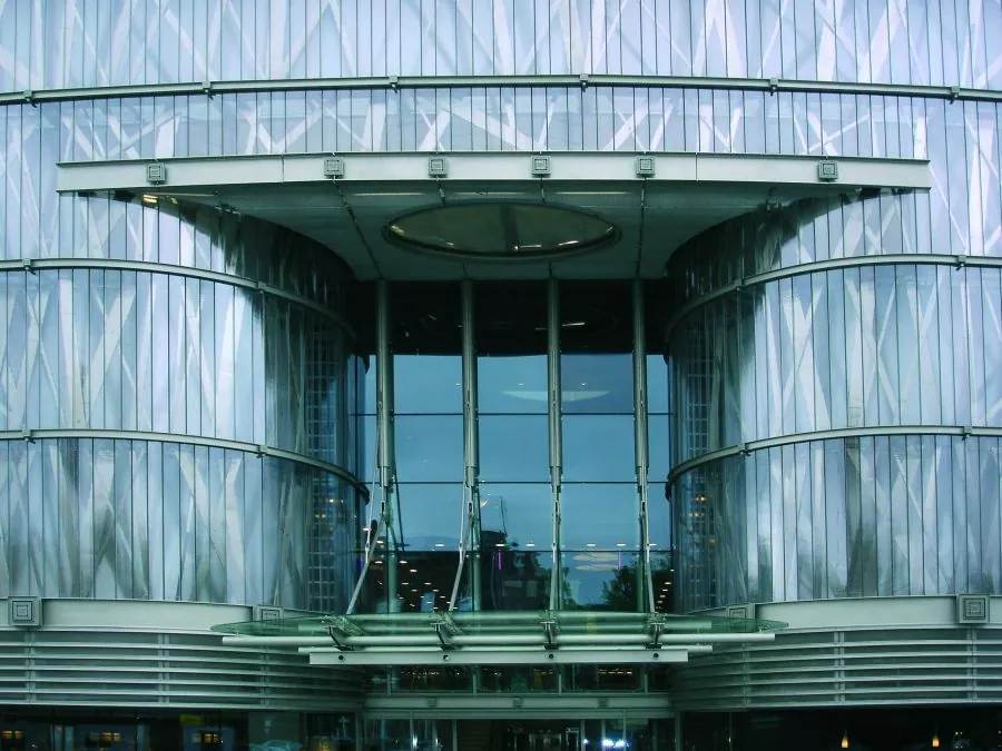 Elewacja szklana została wykonana jako druga skóra obiektu. Na potrzeby projektu huta wyprodukowała dyle szklane w 3 rozmiarach: