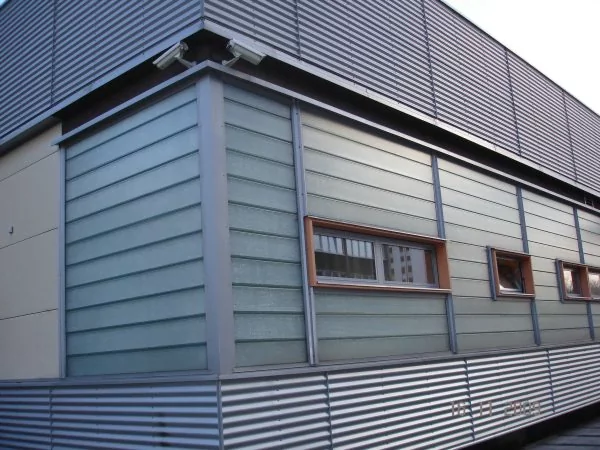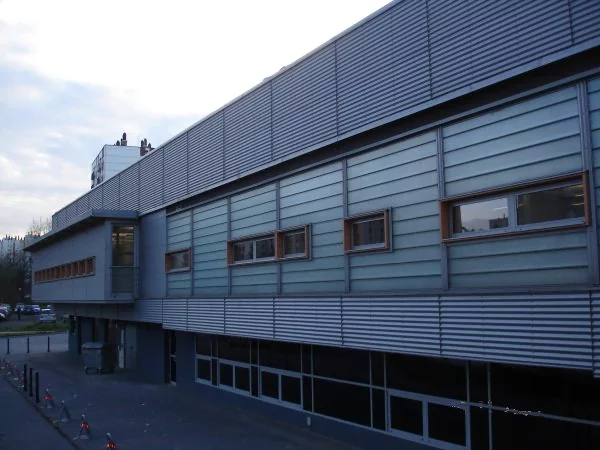 Osiedle Paderewskiego – budynek biurowo-usługowy Fasada szklana wykonana została ze szkła profilowego w układzie podwójnym Pilkington Profilit K25/60/7 ornament 504 wraz z wkładką termoizolacyjną.