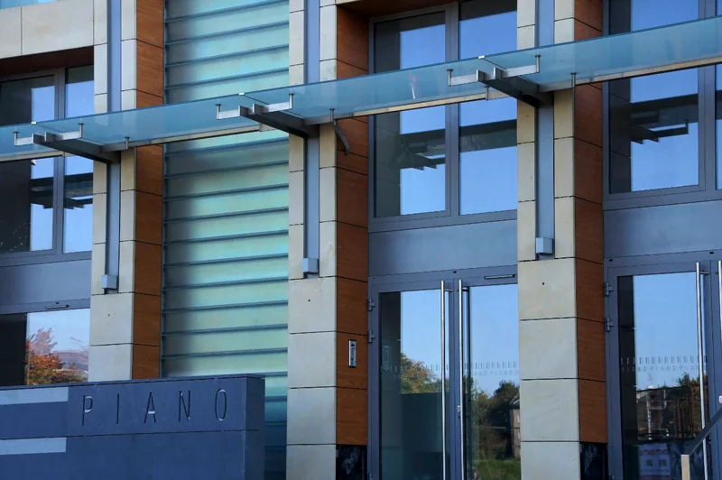 Szkło profilowane podwójne. Przeszklenia wykonane w sytemie Pilkington Profilit w układzie poziomym, zwanym również vitrolit, witrolit, u-glass.