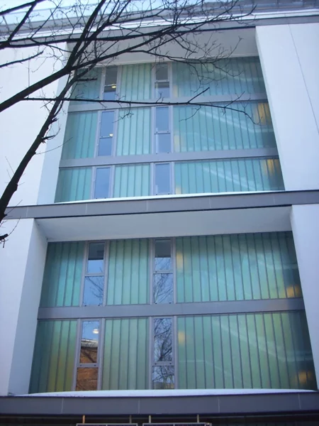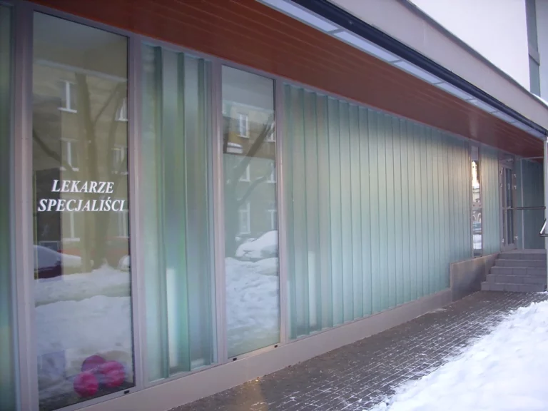 Szkło profilowane podwójne. Przeszklenia wykonane w sytemie Pilkington Profilit w układzie pionowym, zwanym również vitrolit, witrolit, u-glass.