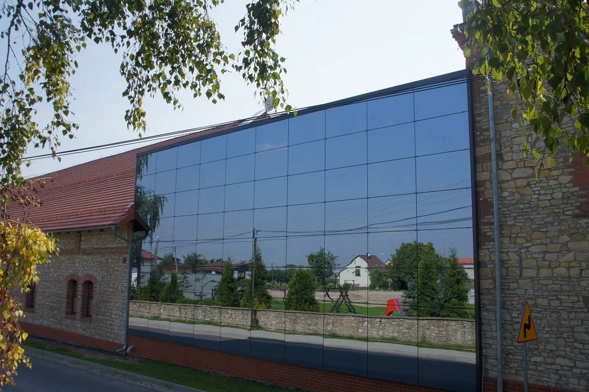 Przy realizacji projektu elewacji szklanej wykorzystaliśmy szkło refleksyjne, dzięki któremu światło na zewnątrz budynku odbija się, dając „efekt lustra”. Tego typu szkło równocześnie zagwarantowało doskonałe oświetlenie wnętrza obiektu i odpowiednią widoczność. Właściwie dobrana grubość szkła pozwoliła zachować konstrukcji odpowiednią izolację termiczną – zapewniając przebywającym wewnątrz komfort przez cały rok.