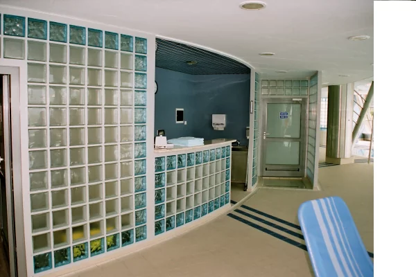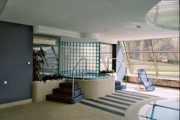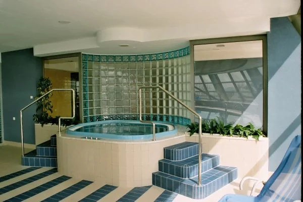 Zastosowano pustaki szklane – luksfery. Naszym zadaniem było stworzenie przeszkleń dla hotelowego centrum SPA. Za cel postawiliśmy sobie stworzenie nowoczesnej i funkcjonalnej przestrzeni. Zależało nam na uzyskaniu efektu „miękkiego światła” oraz przygotowanie konstrukcji, które nie przytłoczą wnętrza, a nadadzą mu ekskluzywny charakter. Przy pracach wykorzystaliśmy najlepsze na rynku pustaki szklane w dwóch kolorach. Luksfery zamontowane przy wannie SPA oraz w recepcji pozwoliły stworzyć niebanalną, świeżą przestrzeń, która sprzyja relaksowi i wypoczynkowi.